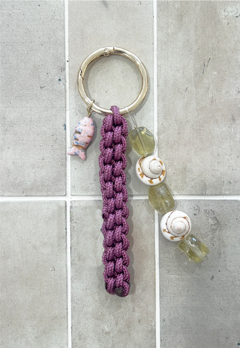 Featuring hand woven rope, gemstones and fresh ocean shells, this bag charm is perfect to spice up your accessories. Adorned with a lucky fit your are guaranteed complements with your new accessory.